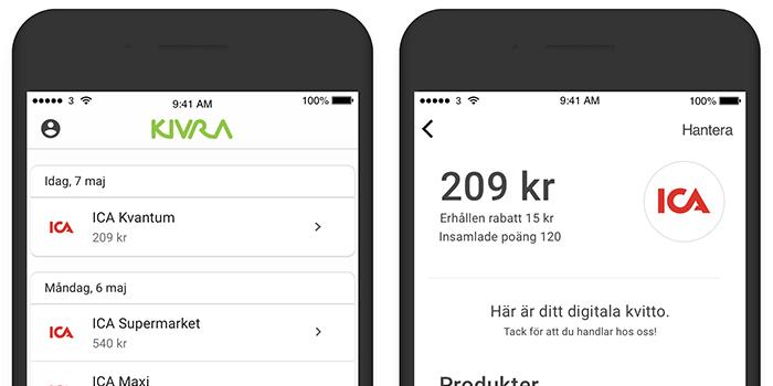 ICA har analyserat olika lösningar för digitala kvitton utifrån identifierade kund- och systembehov. För drygt ett halvår sedan inledde innovationshubben ICAx och Kivra ett samarbete för att tillsammans utveckla en lösning för digitala kvitton som inte bara är anpassad för ICA utan även tillgänglig för andra aktörer att ansluta sig till. Resultatet är en oberoende plattform i Kivras system och innebär en lösning där anslutna företag kan erbjuda sina kunder att automatiskt spara sina kvitton digitalt på ett och samma ställe.
