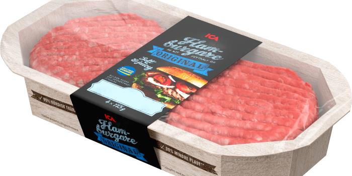 De nya förpackningarna för ICAs egna hamburgare består av ett tråg av pappersfiber där mer än 95 procent består av råvara från Norden, en plastinnerfilm samt en toppfilm av plast. Tråget av pappersfiber sorteras som pappersförpackning och de två plastfilmerna sorteras som plastförpackning. Förpackningen är framtagen på ett sätt som gör det enkelt att separera plasten från pappersförpackningen. Under 2021 kommer en rad ytterligare köttdetaljer att förpackas i samma typ av förpackningar.