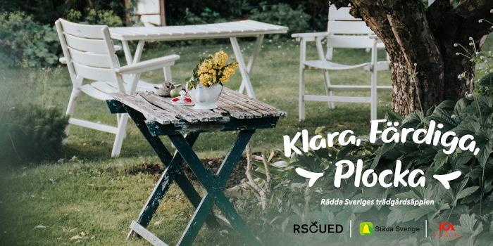 Klara, färdiga, plocka handlar om att ta tillvara på de trädgårdsäpplen som annars ruttnar bort varje år i Sverige. Tillsammans med landets villaägare och engagerade idrottsföreningar ska ICA Stiftelsen, Rscued och Städa Sverige rädda landets äpplen.