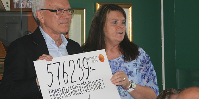 Gåvan till Prostatacancerförbundet överlämnades 8 september vid en ceremoni på Örestads Golfklubb.
